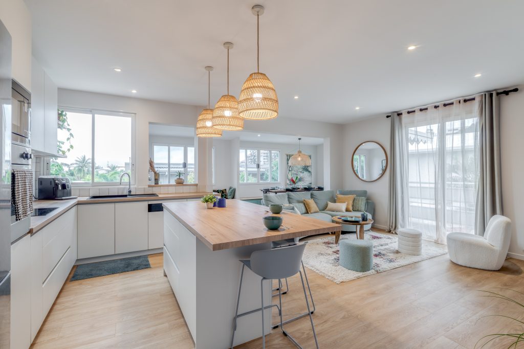 Rénovation, aménagement et décoration d’un séjour, salle d’eau et WC d’une villa à Nouméa.